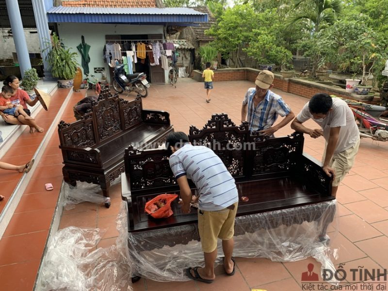 Bàn giao combo bộ trường kỷ song tiện TK28 + tủ chè tại Hà Nội