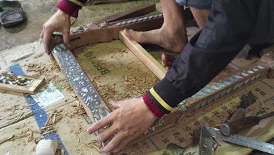 Quá trình khảm lên mặt gỗ bắt đầu từ đây.